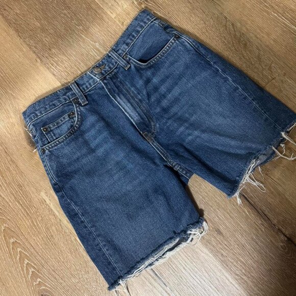 Reformation High Waisted Dark Blue Denim Shorts Size 26