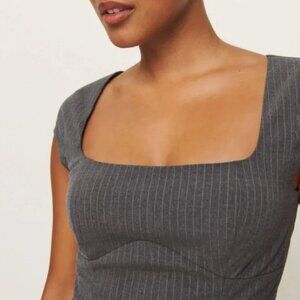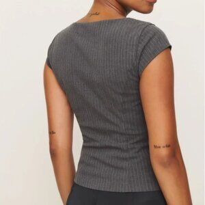 Reformation Hollyn Top Sz6 Charcoal Stripe Gray