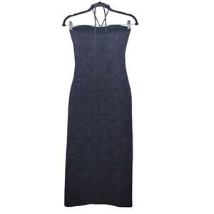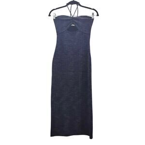 Reformation Indie Midi Dress Ribbed Knit Cutout Halter Tie Neck Blue Bodycon XS