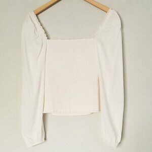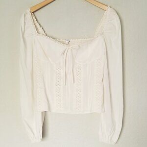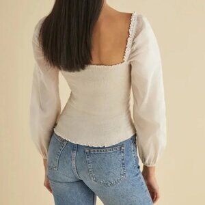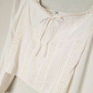 Reformation Isadora Top Blouse Eyelet Lace Trim Smocked Back Ivory Size 6 $148