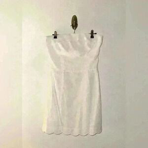 White linen strapless mini dress with scallop edge, Reformation Isles Dress, Worn Once