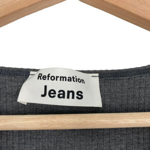 Reformation JEANS Jennie Rib Ruched Mini Dress Long Sleeve Gray
