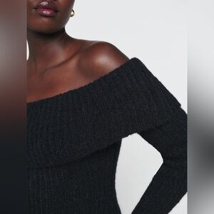 Reformation Jayne Foldover Sweater Off The Shoulder Long Sleeve Knit Mini Dress