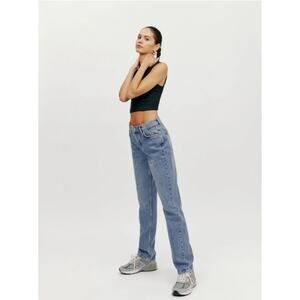 Reformation Jeans 25 Addison Low Rise Relaxed Straight Maldives Blue Denim Casua