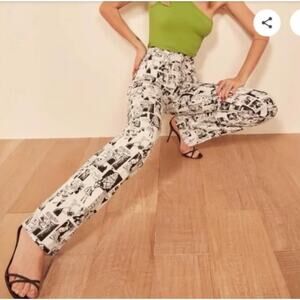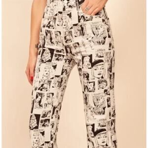 Reformation Jeans 26 Straight Leg Comic Print Newsprint High Rise White Denim