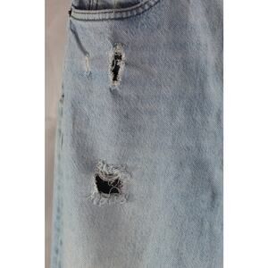 Reformation Jeans Button Fly Distressed Denim Straight Cynthia Destroyed Size 27. in pre-owned condition: no holes, no stains, distressing is intentional, has been recently cleaned, may be stale from storage. Marked as a women's size 27, measurements are taken while laying flat and are approximate: (see photos)