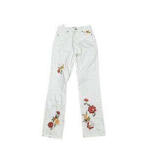 Reformation Jeans Cynthia High Rise Straight in White Embroidered, Floral Sz 23