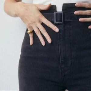 These are the sustainable jeans your butt prefers. This is an ultra high rise, skinny jean with a paperbag waist and a detachable belt. The Kayo is tight fitting throughout.
