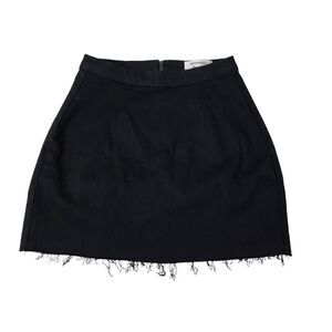 Reformation Jeans Mini Evie Skirt 26 Black High-Waisted Raw Hem Boho Stretch