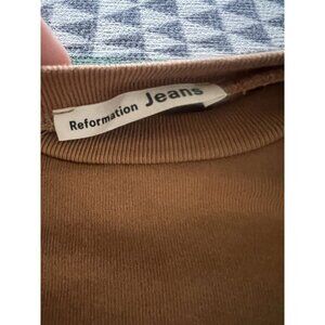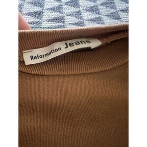 Reformation Jeans Organic Cotton Tan Crewneck Cropped Sweater sz medium. Condition is Pre-owned - Good. Shipped with USPS Ground Advantage.