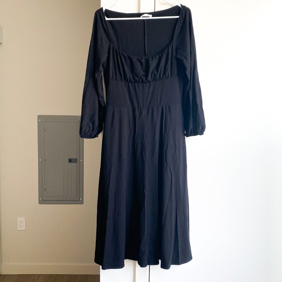 Reformation Jeans Pippa Black Midi Dress Size L Coquette Goth Grunge Stretchy