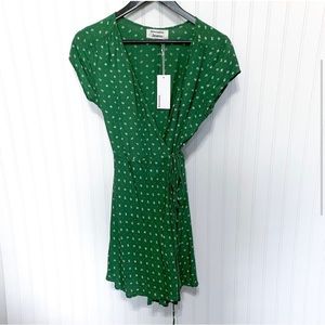 Reformation Jeans Ports Green Floral Mini Wrap Dress Size XS