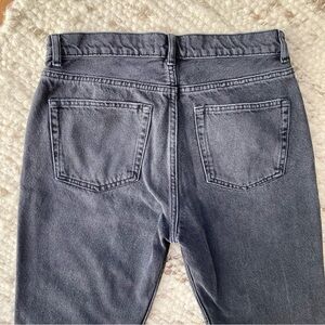 Clean, minimal Ref denim in a versatile washed-black/charcoal that nails the lived-in vibe. High rise with a classic five-pocket layout and zip fly; slim-straight leg that’s easy with ankle boots, loafers or ballet flats. EUC with subtle overall fading and slight wash-wear along the legs—reads as intentionally broken-in and soft. Non-raw hems, no rips. Effortless for fall layers and a capsule wardrobe basic. MEASUREMENTS: Waist: 14 inches Rise: 10 inches Inseam: 26 1/2 inches Cuff: 5 1/2 inches Style tags: • Reformation • high rise jeans • slim straight • cigarette jeans • washed black denim • charcoal denim • ankle boots outfit • fall capsule • minimalist • quiet luxury • street style • off-duty model • clean girl • dark academia • 90s inspired • everyday basics • work to weekend • mom jeans vibe • tuck-friendly waist • classic five pocket • zip fly • non distressed • soft rigid look • sustainable brand • closet staple • pumpkin season outfit • boots season • ballet flats outfit • denim on denim