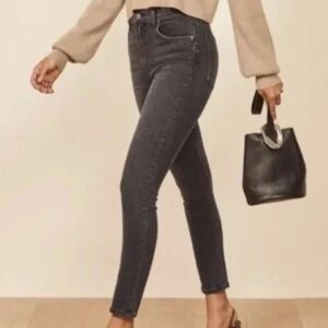 Reformation Jeans Women 25 Grey Avalon Wash Denim High & Skinny Crop Jeans