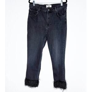 Reformation Jeans Women's Black Feather Hem Trim Black Skinny High Rise Jeans 30