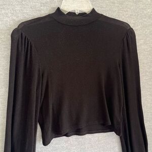 Reformation Jeans Mock Neck Knit Top Womens Small Crop Semi Sheer Bishop Sleeve