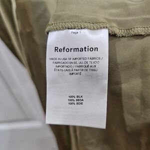 Reformation Jeany 100% Silk Dress in Olive Oil