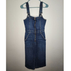 Reformation Jenny Zip Front Denim Jumpsuit Cropped Wide Leg Jean Overalls Retro