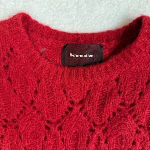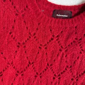 Reformation Jessica Pointelle Knit Alpaca Sweater Red Large