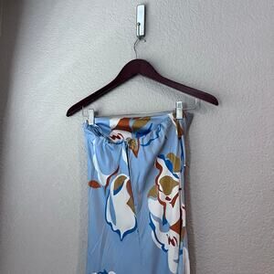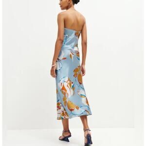 Reformation Joana Silk Dress Hyperion Print Strapless Floral Midi 0 Tropical