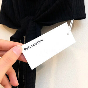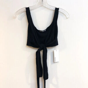 Reformation Johny Two Piece Black V Neck Strappy Tie Waist TOP ONLY Large NWT
