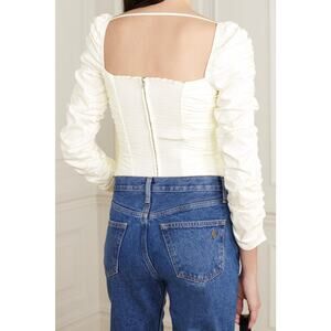 The Joi Top pairs well with high rise jeans or a midi skirt and riding boots.