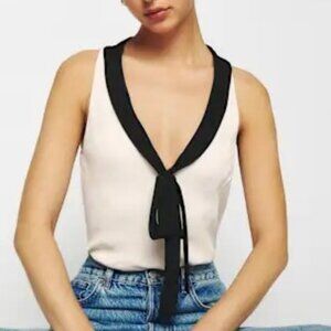Top notch. Shop the Jolene Top from Reformation, a sleeveless top with a V neckline and contrast piping with a center front bow detail.