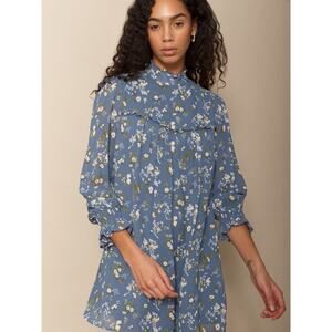 Reformation Jourdan Blue Avery Floral Mini Dress Long Sleeve Boho Size Large