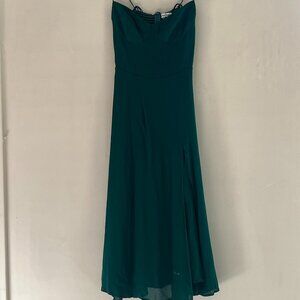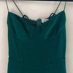 Beautiful Juliette dress in emerald green, with a sexy side slit, delicate tie straps, and a fluttery crepe skirt with lots of movement. Size 4. Freshly pressed. In great condition; just too small for me, unfortunately!