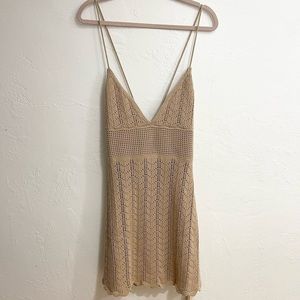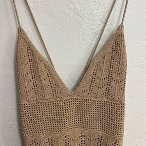 Condition is new with tags. Center back tie. Crochet knit. Deep v neckline. Not bra friendly. Spaghetti straps.