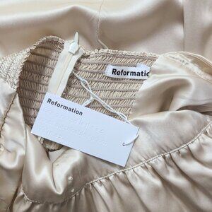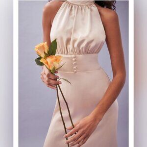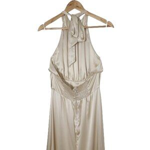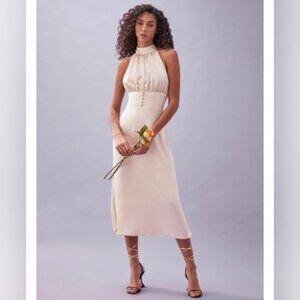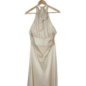 Reformation Kailey Almond Silk Midi Dress Womens Bridesmaid Party Halter Dress 8