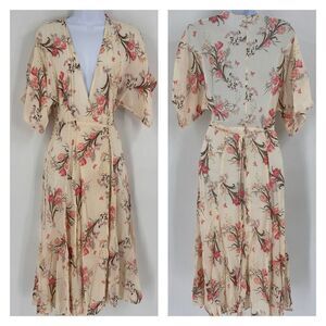 Reformation Karen Kimono Midi Wrap Dress Leila Floral Tulip Size XS Cream Pink