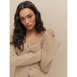 Reformation Karina Regenerative Wool Linen Tan Scoop Neck Cardigan Size L