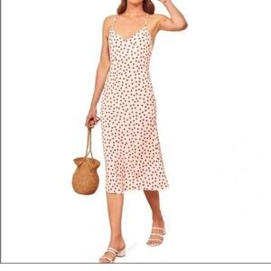 Reformation Kat Slipdress white red polka dot low back summer sleeveless strap