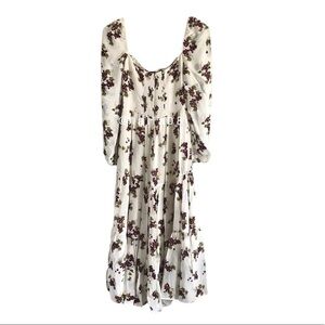 The Kellie is fitted in the bodice and waist with a full, tiered skirt. It features a ruffle edged neckline and a smocked back bodice for a little bit of stretch.