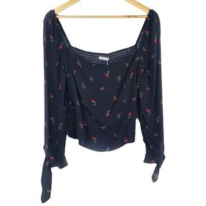 Reformation Kemmy Black Rose Top Size 12 NWT