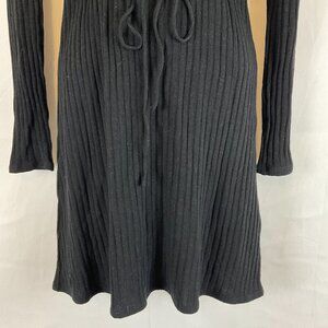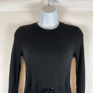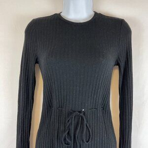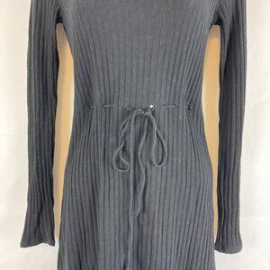 Reformation Knit Ribbed Dress XS Black Drawstring Waist Long Sleeve