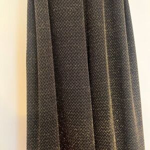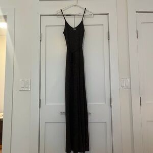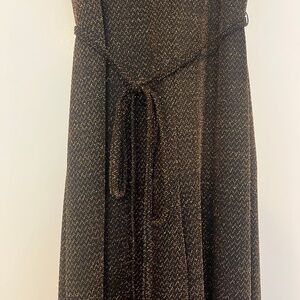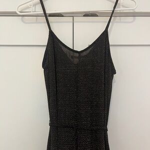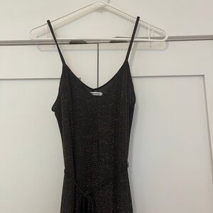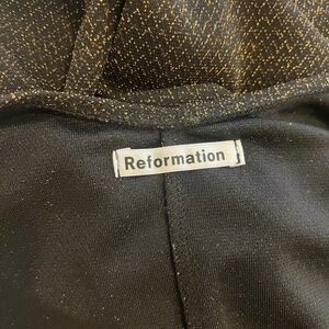 Reformation Koda Jumpsuit. Color: Gold Sparkle. Size: XS. Sleeveless stretch black wide leg jumpsuit with gold bronze lurex thread. 68% nylon, 26% metallic, 6% spandex. Dry clean only.