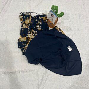 - Back smocking, tie straps, sweetheart neckline, side slit.