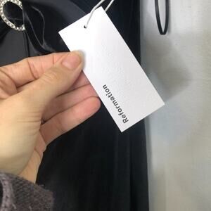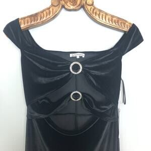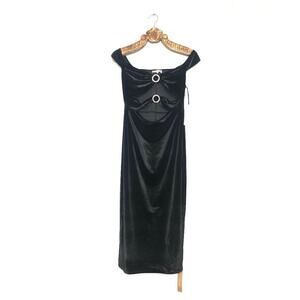 Reformation Lantern Velvet Midi Dress Embellished Cutout Bardot Off the Shoulder
