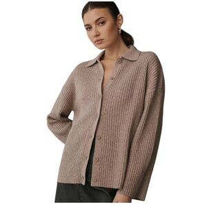Reformation Large Oversized Fantino Cashmere Beige Collared Cardigan EUC