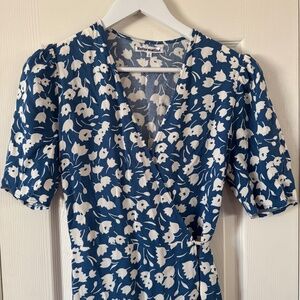 Reformation Laurent Blue Floral Wrap Midi Dress Puff Sleeve Style Size S