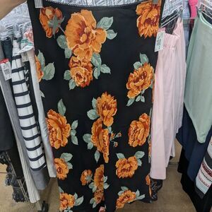 Elegant black midi skirt featuring vibrant floral patterns. Perfect for any occasion. These florals are perfect for fall. Although this is a petite size, can fit a non-petite size 6 just fine.