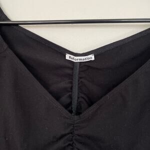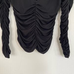 Reformation Leonora Black V-Neck Ruched Cinched Sleeve Top (S)