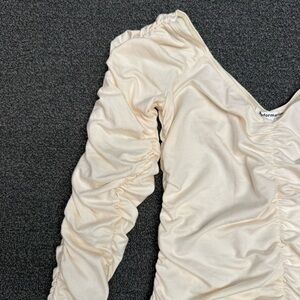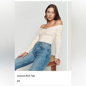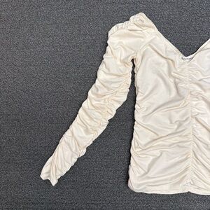 Reformation Leonora Knit Top in Cream - Long Sleeve - Wide V Neck - Ruching on Sleeves & Bodice - Size Medium - New with Tags