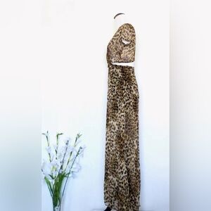 Reformation Leopard Print Chiffon Maxi Dress Cut Out Detail SZ XS