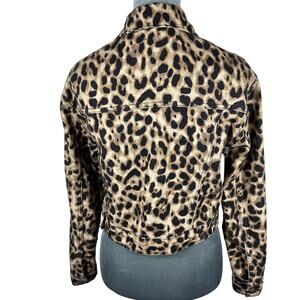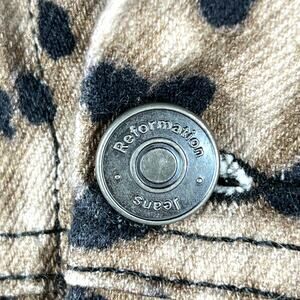Reformation Leopard Print Jean Jacket Small Tan/Black Trucker Denim Boho Mobwife