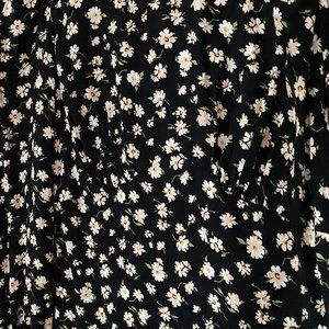 The Leora is slim fitting throughout the bodice and skirt. It has relaxed fitting sleeves. This dress features ruffle edged sleeves and neckline and a floral print.