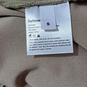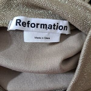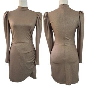 Reformation Lexi Women's Long Puff Sleeve Mock Neck Ruched Size Small Back Hidden Zipper Tan Gold
