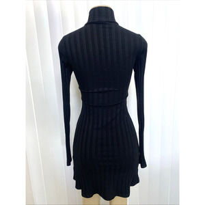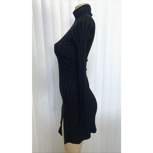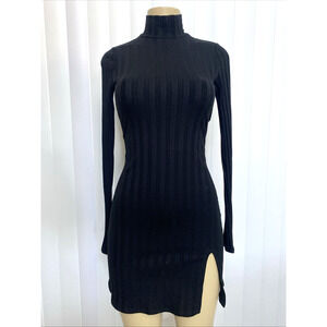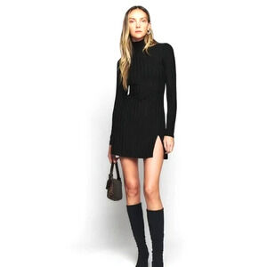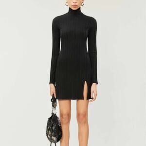 Reformation Libra Knit Dress Ribbed Turtle Neck Mini Long Sleeve Slit Black XS